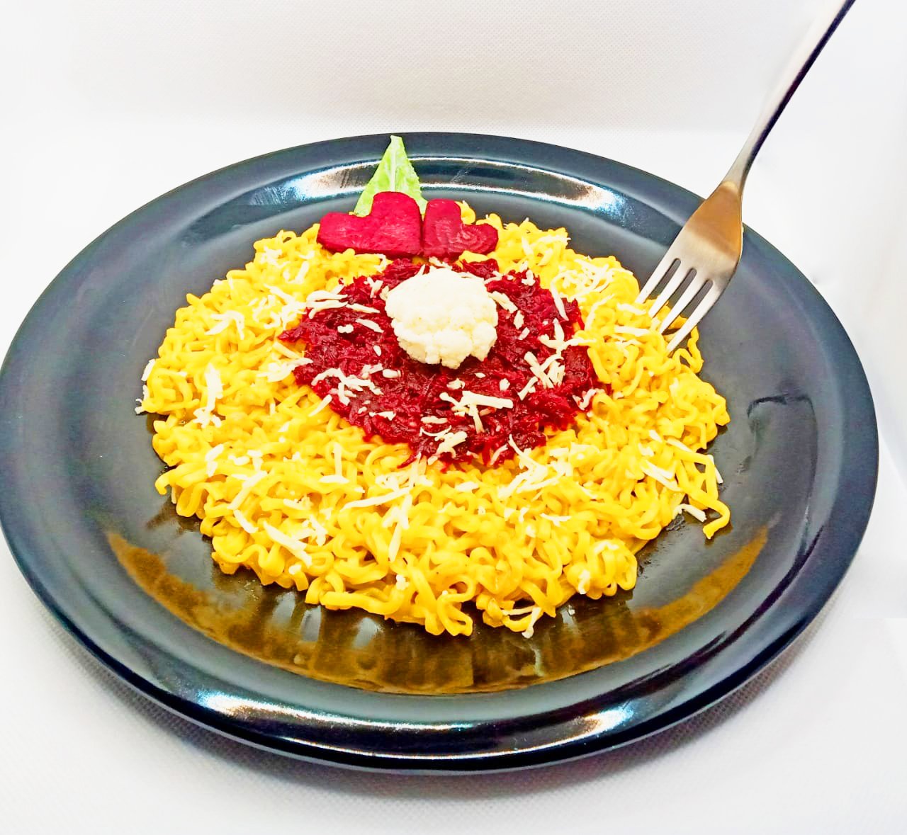 Mix well cooked beetroot and noodle on a medium flame for a few minutes.